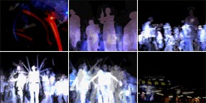 人の往来の中から光の軌跡を生成する。